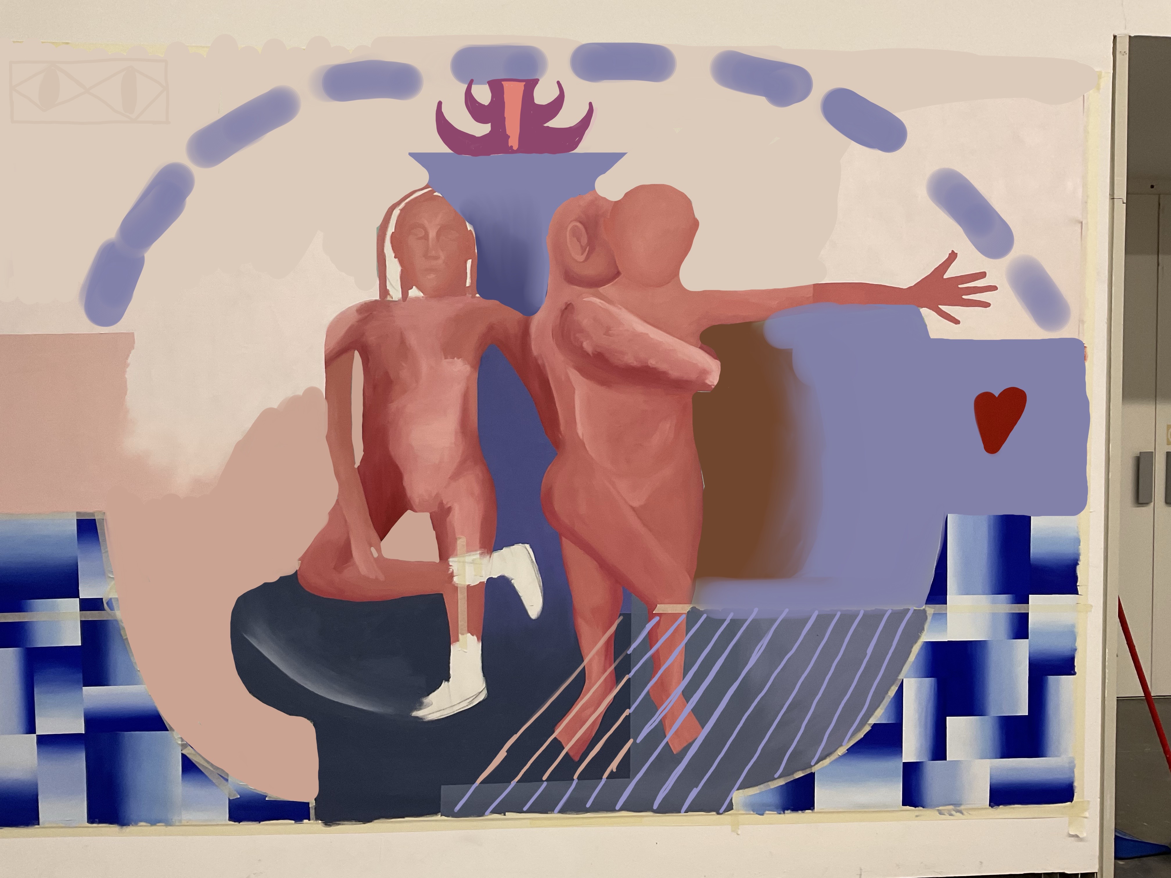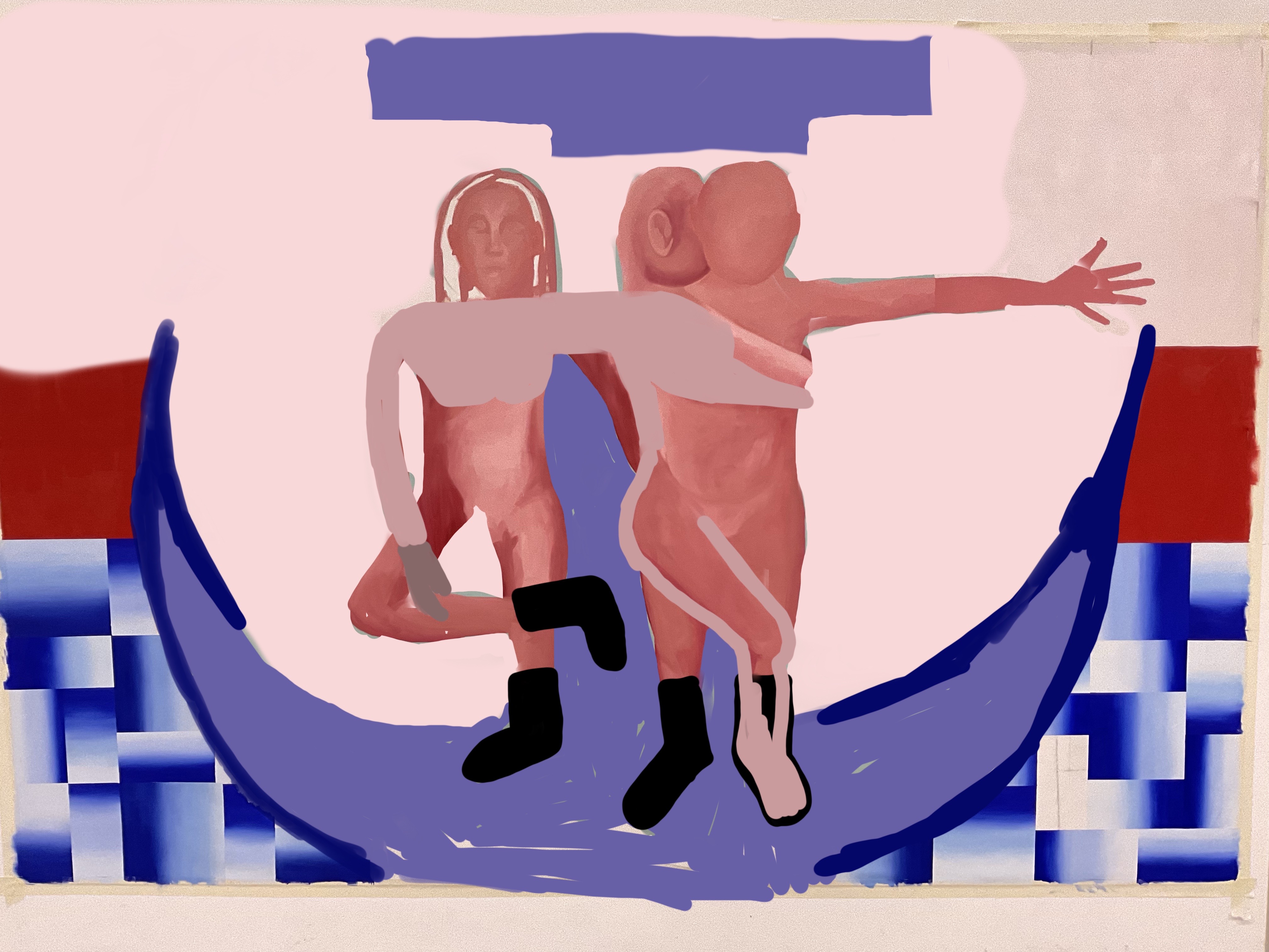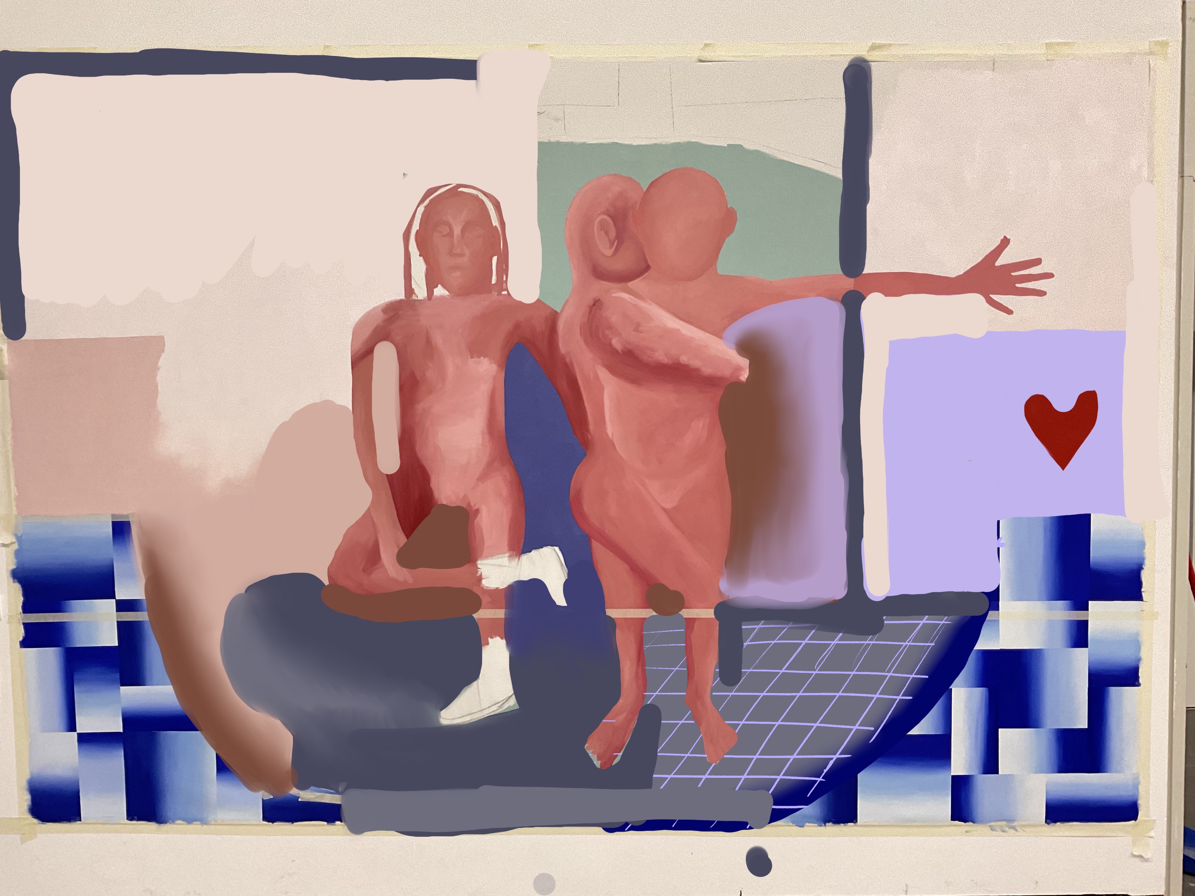 No se que formas tomará este cuadro, de momento parece que lo único que se mantiene son las figuras humanas protagonistas, pero les queda poco tiempo tal y cómo las conocemos porque la textura relamida de su piel no me acaba de convencer...